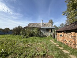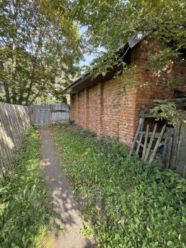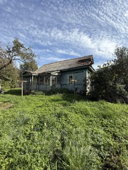 О доме : деревянный дом старой постройки пригодный для круглогодичного проживания и прописки . 3 комнаты , зал , кухня , котельная и терраса. На участке также имеются капитальные строения из кирпича : гараж , навес со смотровой ямой для авто , хоз. постройки и погреб. Газ- заведен в дом . Свет - заведен в дом . Вода - колодец . ( 9 колец )