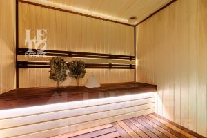 Первый этаж : прихожая, гардеробная, гостевой санузел, сауна, котельная-постирочная, спальня, кухня, гостиная с камином