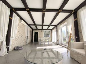 Планировка. 1-й этаж: Второй свет, гостиная, камин, панорамные окна, две комнаты, из кухни выход на застекленную террасу, санузел с душевой кабиной, сауна, техническая комната. 2 этаж: 4 комнаты, совмещенный санузел с ванной. Высота этажа 3.3м. Мансарда: подойдет под бильярд или домашний кинотеатр.