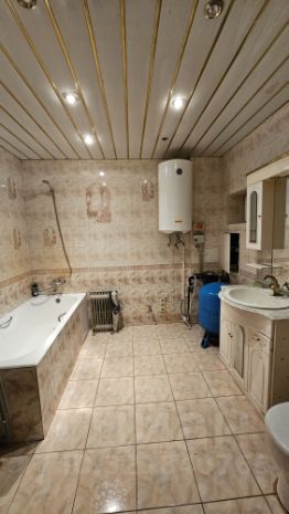 На первом этаже дома: кухня, большая гостиная комната с камином, из которой ведет лестница на второй этаж, спальня с печью, с/у, бойлер.
