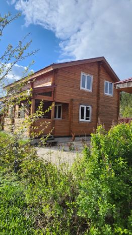 На участке расположен двухэтажный дом размерами 9,5х9,5 метров, общей площадью около 180 квадратов, постройки 2017 года, выполненный из профилированного бруса, перекрытия из доски 50х200.