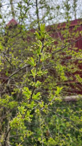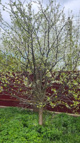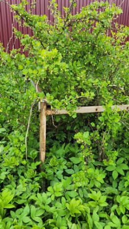Правая часть участка выровнена плодородным грунтом, посажены садовые деревья (яблони, груши, вишни, слива), кустарники (смородина, малина, крыжовник).