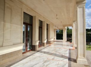 В бассейне и гостиной первого этажа ведутся работы по финишной отделке.