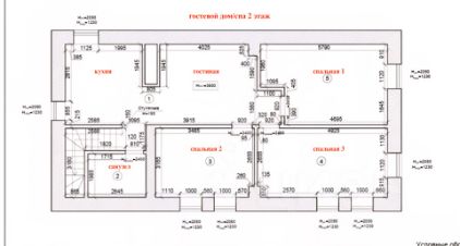 2 этаж - кухня, гостиная, три спальные комнаты, санузел.