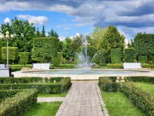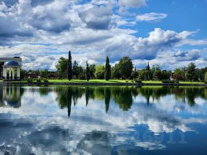 Хорошее расположение в поселке, недалеко от парка с озером и пляжем.
