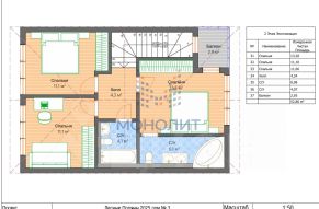 - 2 этаж - 2-3 спальных комнаты (мастер -спальня) , 2 санузла , холл.