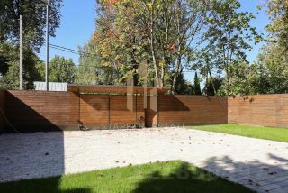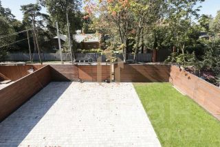 Эксплуатируемая кровля с возможностью организации дополнительного пространства для отдыха и прекрасным видом на посёлок. Фундамент - монолитная плита на сваях, с утеплителем, участок выровнен и поднят, дренаж по всему периметру, газонная трава, зелёные насаждения по желанию будущего владельца. Предусмотрена площадка для парковки у фасада и возможность организации навеса или гаража на 3 машиноместа.