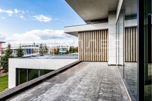 В строительстве использовались высококачественные материалы. Панорамные окна, большая площадь остекления, второй свет и высокие потолки делают дом очень светлым и просторным.