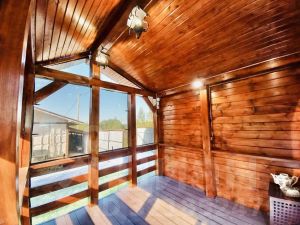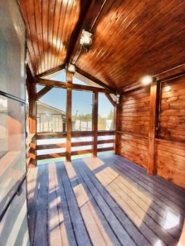 Дом построен по каркасной технологии (6*9). Стены с утеплителем толщиной 150 мм, фундамент сваянный металлический. В доме имеется кондиционер, телевидение Триколор, Wi-Fi, антенна. Коммуникация заведены в дом (санузел душ и туалет, накопительный бак для воды на 500 л., водонагреватель накопительный, своя скважина). Дом оснащен необходимой мебелью (включая кухонный гарнитур) которые остаются новому владельцу дома и участка. В доме имеется прекрасная веранда (закрытая), кухня и две раздельные комнаты. Отопление в доме электрическими конвекторами, которые в зимний период всегда на минимальном прогреве, дом никогда не размораживался. Возможно подключить систему умного дома (свет частично подключен к приложению на телефоне).