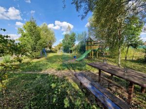 Электричество 15 кВт (3 фазы), колодец для полива, биотуалет уличный. Есть беседка возле дома и баня.