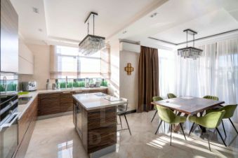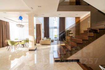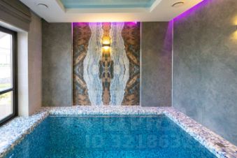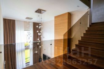 В доме расположены гостиная с камином, четыре спальные комнаты, две из которых с ванными, спа-зона с купелью, сауной и хаммамом, тренажёрный зал. Для летних завтраков на первом этаже создана просторная крытая терраса. В доме и на участке расположены два гаража с крытыми парковками.