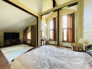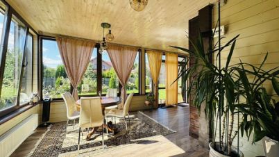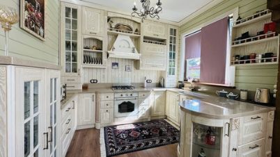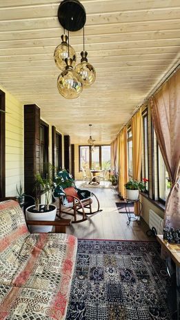 В жилом доме из клееного бруса 2 этажа, 4 спальни, 3 санузла, кухня-гостиная, прихожая, гардеробная, большая веранда, лоджия, постирочная, бойлерная. Просторные комнаты, высокие потолки, расширенное и панорамное остекление. Центральные коммуникации: газ, водоснабжение, канализация, электричество.