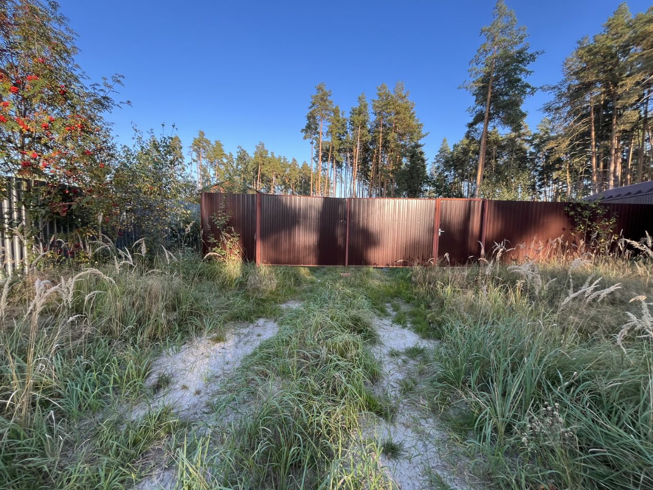 Участок очищен от кустов и деревьев,оставлены сосны. Подготовлен для строительства дома. Огорожен забором из профлиста,есть распашные ворота Свет 15 кВт 380 вт подключен.