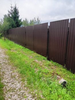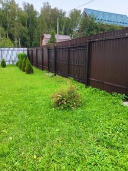 На участке установлена теплица (3*4), хоз.постройка, высажены кустарники и цветы. Установлены металлический забор и калитка.