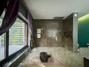 Высота потолков такова, чтобы специально создавалось максимально воздушное пространство: на первом этаже 4 метра, с двойной подсветкой, на втором этаже 3 метра. Предусмотрен цокольный этаж, где расположена котельная, две комнаты свободного назначения, сауна, душевая и санузел.