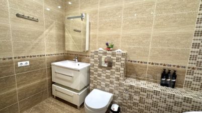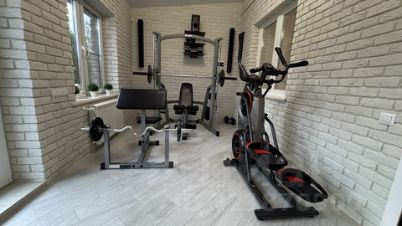 1-ый этаж: отдельная прихожая, холл, спальня, санузел, совмещённая кухня с гостиной, тренажерный зал, водяной тёплый пол. На кухне встроенный холодильник, посудомоечная машина, стиральная машина, варочная плита (газ), духовой шкаф (электрический), двухконтурный газовый котёл, вся техника фирмы BOSCH. Тренажерный зал!