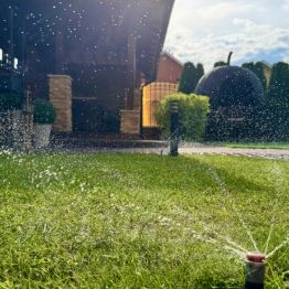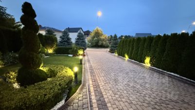 4. Автополив, управляется с сотового телефона, огромная экономия вашего времени и сил! Вся брусчатка на бетонном основании, всё делали на века! По периметру участка установлены ливнёвки. Всё уличное освещение управляется изнутри дома. Забор на капитальном бетонном фундаменте.