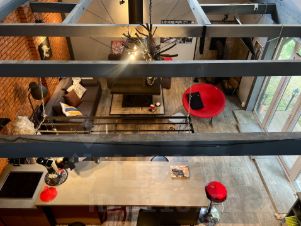 Следующее строение, расположенное на участке - баня, выполненная в стиле Лофт с функциональной зоной барбекю