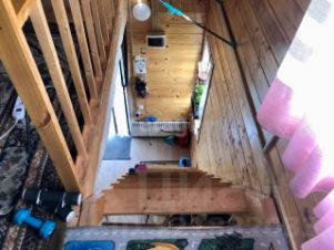 Сам дом - каркасный, на учтенном участке, площадью 11 сот. На участке растут цветы, находится сам колодец и септик. Дом имеет свайный фундамент с песчаным покрытием в 60 см. Крыша - металлочерепица. В доме стоит дорогой и качественный пол из дуба. На первом этаже находится кухня гостинная и совмещенный санузел с туалетом и душевой кабиной. На втором этаже - спальня.
