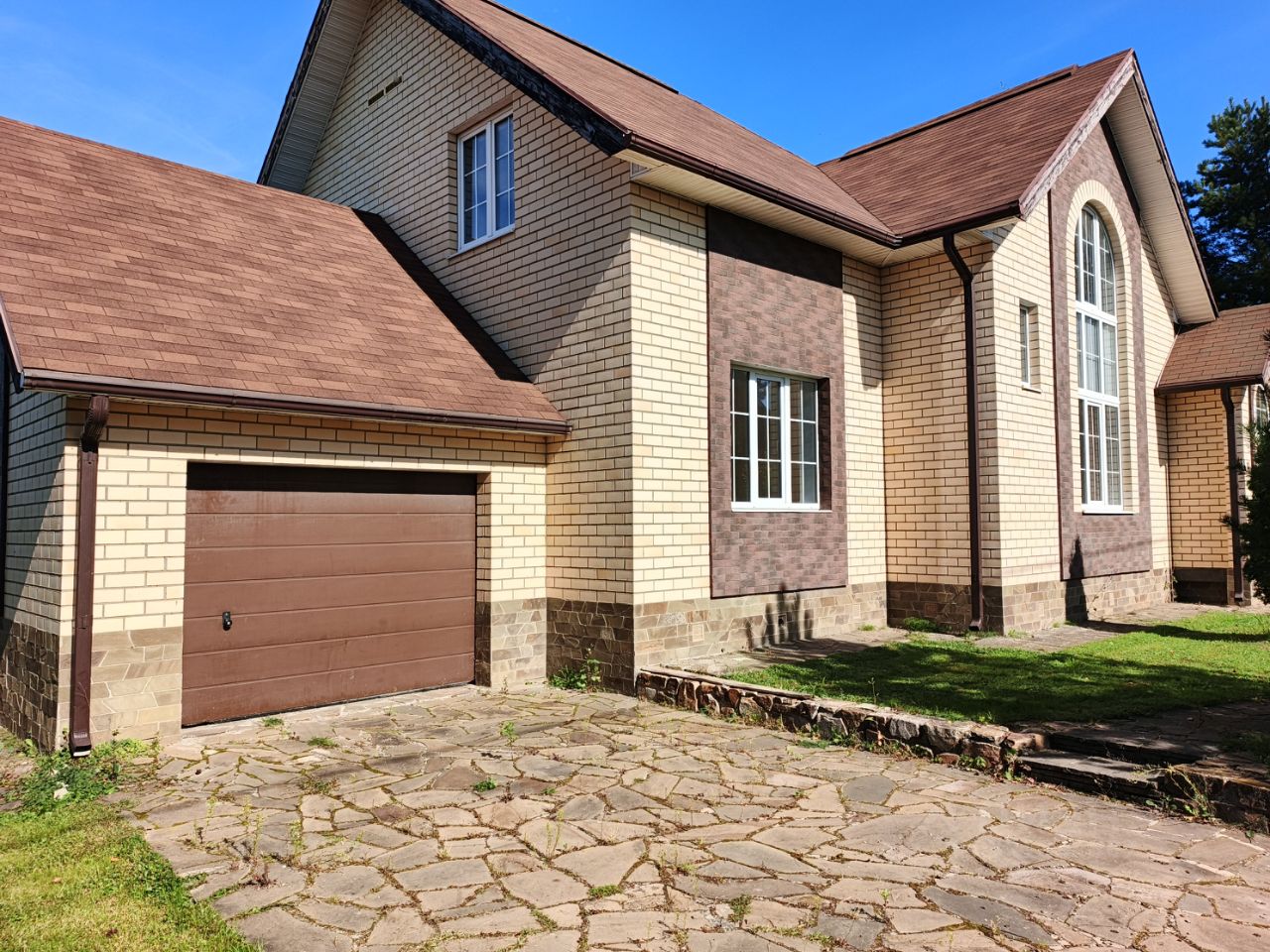 Экология и качество: Имитация бруса из лиственницы, покрашенная до монтажа (исключены щели), мягкая кровля, отмостка и двор из дикого камня. Каждый материал выбран с любовью и на века.