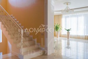 На второй этаж ведет монолитная лестница с перилами авторской ковки, ступени отделаны натуральным кварцевым камнем теплого оттенка. Это зона тишины, уюта и комфорта. Здесь находятся 3 просторные спальни, 2 из которых имеют шикарный вид на зелёный лесной массив и большие гардеробные, малый c/у, большая банная комната площадью 16 квм, которая, помимо душевого отсека, предусматривает пространство для установки роскошной ванны, и удобная комната постирочной.