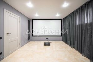 Цокольный этаж дома предназначен для семейных развлечений: светлое помещение под спортзал с окнами на улицу, большая бильярдная комната с установленным 10 футовым бильярдным столом, кинотеатр с широкоформатным экраном, комфортной мебелью с реклайнерами и шумопоглащающими стенами, комната свободного назначения и с/у с душевой кабиной.
