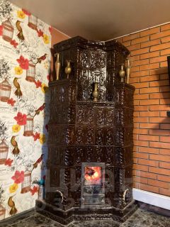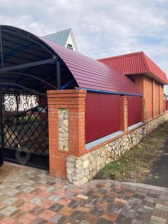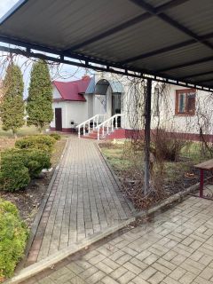 На участке 12 соток еще есть два капитальных строения: баня с парилкой, комната отдыха и ванной комнатой. Баня отапливается от газового котла, парилка топится дровами; гараж кирпичный на 2 машины. Подъезд к дому асфальтированный, дорожки на участке выложены плиткой.