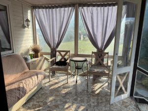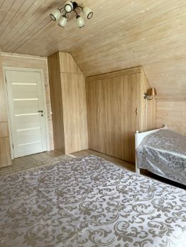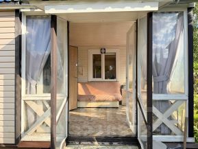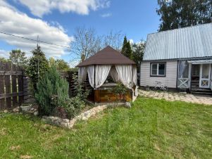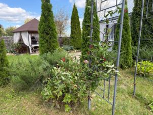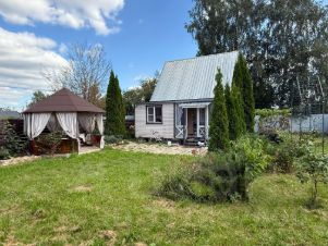 Участок с домом находится 22 км. от МКАД, по Новорижскому шоссе. Дом в хорошем состоянии, пригоден для жилья. Использовали как дачу. Канализации нет, можно подвести центральную, можно сделать свою. Место для туалета в доме есть, но пока не сделали. Есть душ, вода, отопление. Зимой в любой мороз очень тепло. Дом каркасный утеплен и обит сайдингом, Утепление 200мм. Фундамент свайный. Есть собственная дорога к участку с основной трассы. Участок ухожен, есть плодовые деревья, ягоды, виноград, грибы. Имеется теплица и небольшой выделенный огород под посадку. Небольшая собственная березовая роща. По территории проходит газ в конце участка, на для оформление дома это никак не повлияло. Отопление электрический котел с незамерзающей жидкостью в системе, по дому проведены батареи. Для нагрева воды в ванной нагревательный котел. К участку хороший подъезд с трассы. В шаговой доступности продуктовые магазины , аптека, Озон и WB. В соседней деревне Покровское школа, детский сад. Рядом гольф клуб Agalarov Estate, есть рестораны, кафе. От МКАДА на авто 10-15 мин. Если своим ходом станция Нахабино, далее автобус до д. Обушково.