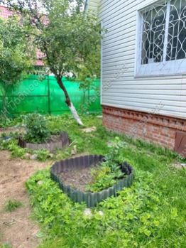На участке садовые деревья, кустарники, газон, дорожки, стоянка, участок огорожен (профлист).