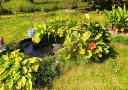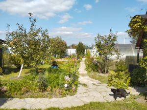 Участок огорожен забором, соседи с трёх сторон, многие проживают круглогодично. На участке 2-е бытовки, колодец, парковочное место, плодовые деревья кустарники, парник.