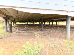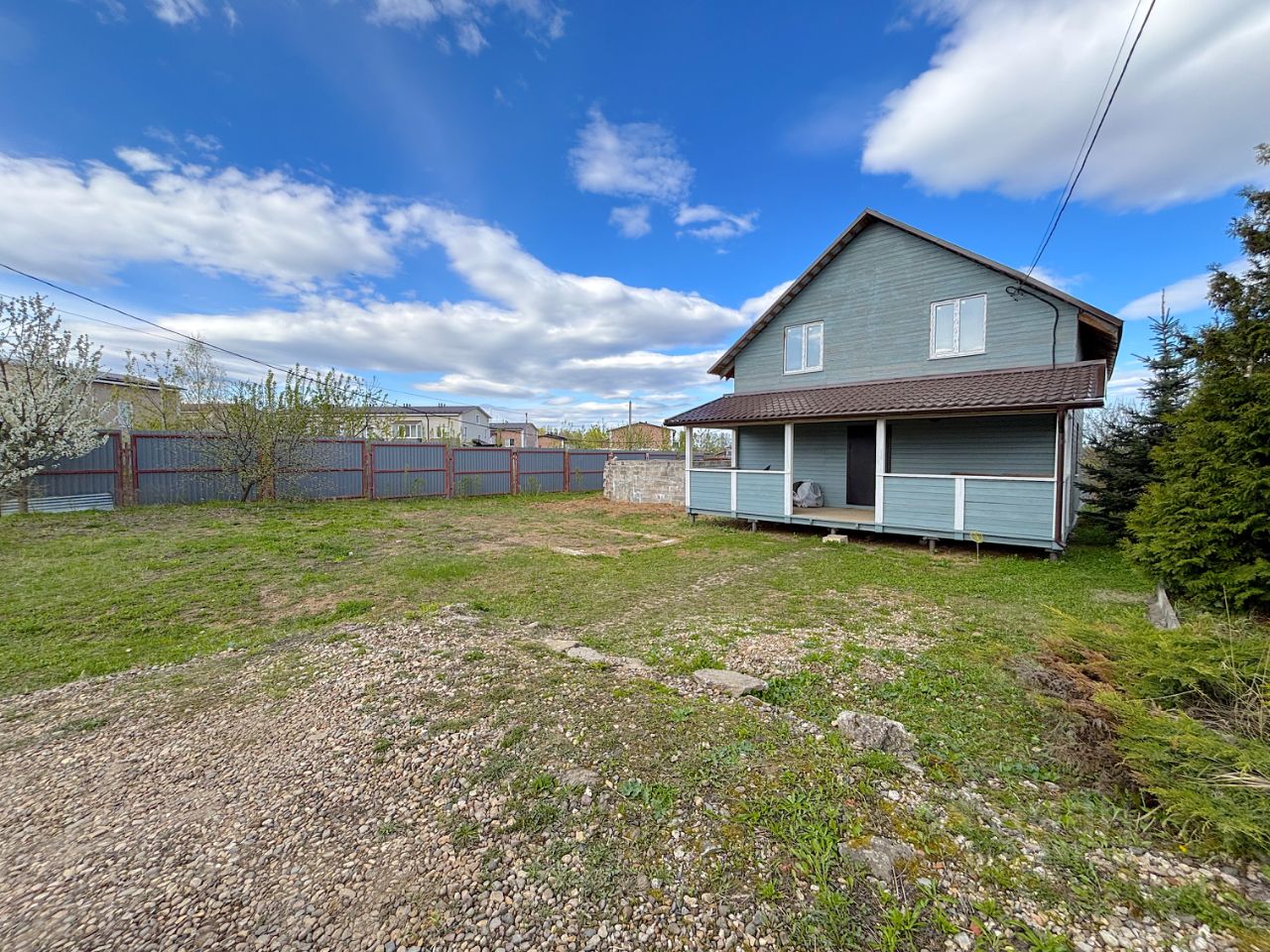 Ограждён забором с трёх сторон. Заезд укреплён и поднят под удобную парковку на несколько машин.