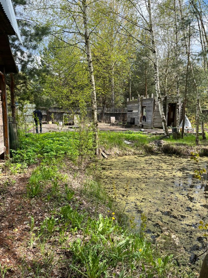 Есть пруд на самом участке. Участок прямоугольной формы.