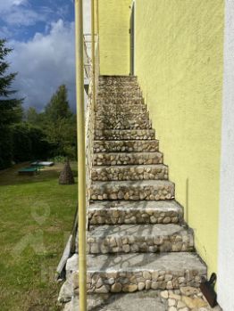 Железобетонные перекрытия, ленточный фундамент (глубина заземления 1,75 м и над поверхностью еще 0,45 м. 1 этаж построен полностью из кирпича, второй и третий - из пеноблока. Снаружи все стены отделаны штукатуркой, с выдержкой в год, затем штукатурка по сетке+ 5 см пеноплекс+декоративная штукатурка и окраска. Везде в доме разведено отопление, батареи биметалические. Внутри дом штукатурка, 1-ый этаж обшит вагонкой, второй и третий этажи отделаны гипсокартоном и зашпаклеваны ветонитом (отделка whitе bох) полностью отделан. На втором этаже одна комната полностью отделана. Крыша - импортная металлочерепица. Окна - пластиковые тройные стеклопакеты. На первом и втором этаже с/у. На первом этаже, на полу керамогранит, ламинат. Есть кирпичная печь, на первом этаже твердотопливный котел+электротэн в котле. 1-й этаж: прихожая, санузел, спальня, большая кухня-столовая. 2-й этаж: санузел, большой холл 35 м2, 1 спальня, лестница на третий этаж. 3-й уровень: зимний сад или по желанию 3 спальни. Дом полностью отделан снаружи. Первый этаж полностью жилой. На участке расположен небольшой гостевой летний утепленный домик в один этаж.