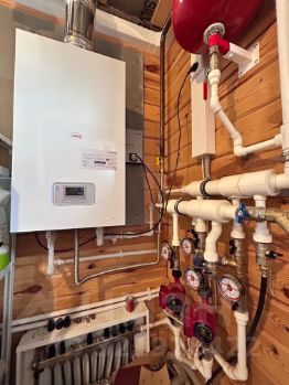 Проведено отопление, газовый котел - радиаторы во всех помещениях + теплый пол (коридор, санузел, котельная, гостиная, кухня).