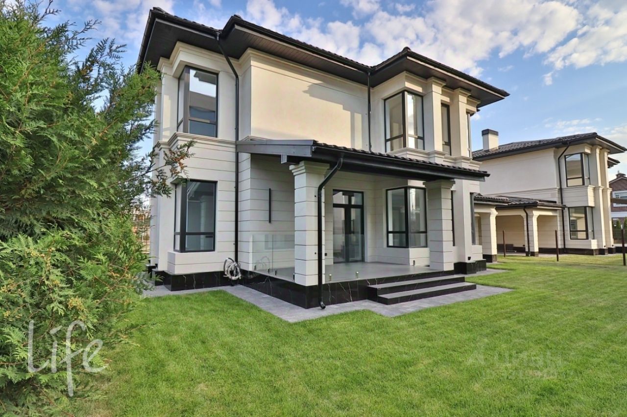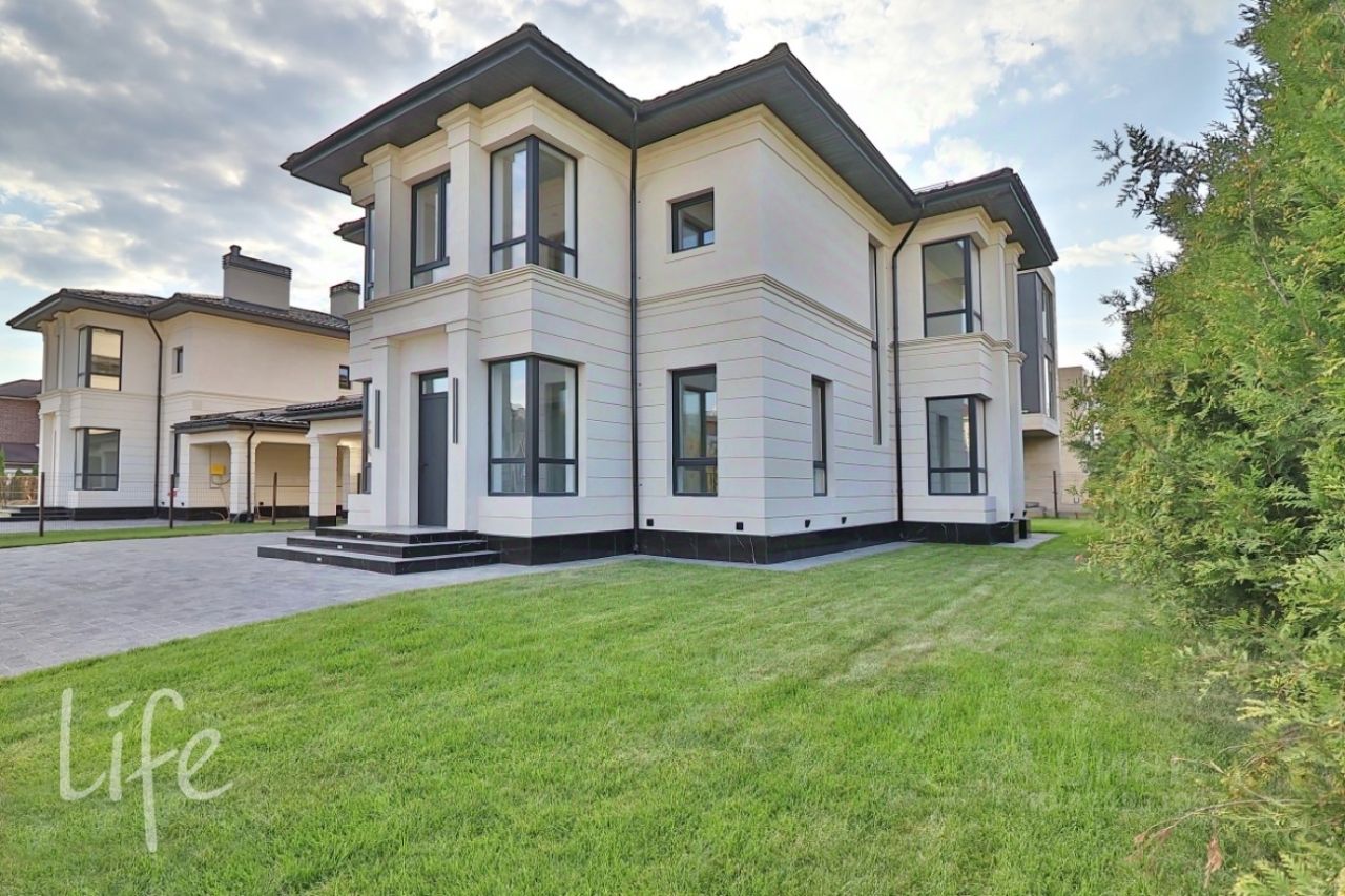 Коттеджный поселок "Новорижский". Новый элегантный дом, полностью под ключ. Конструктивные особенности: монолитный фундамент и межэтажные перекрытия, стены из газосиликатного блока, фасад отделан известняком.