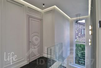 Дизайнерский интерьер выполнен в современном стиле, в светлых тонах. Гостиную украшает биокамин. Современные световые решения. Все центральные коммуникации, умное отопление, система кондиционирования по всему дому.