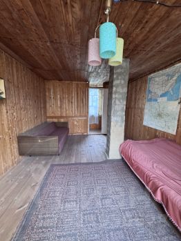 Продается дача в 2 мин пешком от реки Воря - участок 6.8 соток, дом 68 м2, 2 этажа. В небольшом уютном СНТ, в окружении елово-соснового и смешанного леса. От дома до реки пешком 2 минуты. Выход к реке в калитку из СНТ. В реке можно купаться, оборудован мост и лестница в воду (см фото). Участок - Земли сельхоз назначения. Дом - оформлен как нежилой. Дом стоит на ленточном фундаменте, построен из бревна, проконопачен, бревно обработано олифой, обшито доской с обеих сторон. Год постройки - 1983. Дом крепкий, в очень хорошем состоянии. Ни запахов, ни сырости, ничего нигде не течет, дом абсолютно сухой, пригоден для использования как есть; возможно, нужен будет мелкий ремонт. Крыша - шифер. Снаружи дом покрашен. Окна - двойные рамы. Под домом подпол в половину роста человека. Отопление печное, печь работает. Вода - скважина на участке; в СНТ также есть колодец. Туалет на улице. Для воды есть водоотвод из дома в канализационную яму. Электричество 3.5 квт. Можно увеличить мощность. Дороги зимой чистят - к дачам круглогодичный подъезд. СНТ огорожено забором с воротами. Метраж - первый этаж - кухня примерно 8 м2 (на кухне лестница на 2-ой этаж, вместе с местом под лестницу метраж помещения кухни 10.5м2), две спальни по 10м2; на втором этаже комната 16м2, коридор и две кладовки под дачные инструменты. Летняя веранда 15м2 пристроена к дому, использовалась как летняя кухня. Высота потолков 2.35 м на 1 этаже, 2.3 м на втором этаже. Участок ровный, чистый, без лишних построек. На участке яблони, калина, барбарис, черноплодная рябина, сливы. Качественный внешний забор из дерева с калиткой и воротами. Все работает, открывается, есть заезд для авто. Хорошие соседи, хороший председатель СНТ. Соседи напротив живут. Соседи слева справа в данный момент не живут. Документы и на участок и на дом готовы к сделке. Дом находится в 47 км от МКАД по ярославскому шоссе. От станции Хотьково 10 мин на машине. В Хотьково вся городская инфраструктура - супермаркеты, пункты доставки, спорткомплекс Олимп с современным бассейном, тренажерным залом, спа-центром, парикмахерской. Пожалуйста, пишите в сообщения. Риелтор есть, просьба риелторам не беспокоить. Спасибо