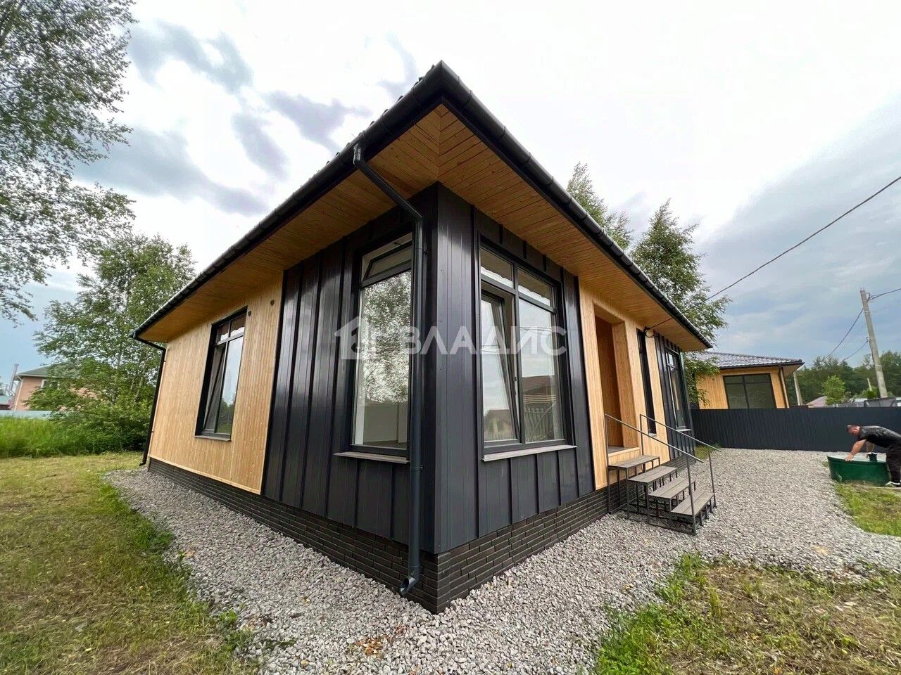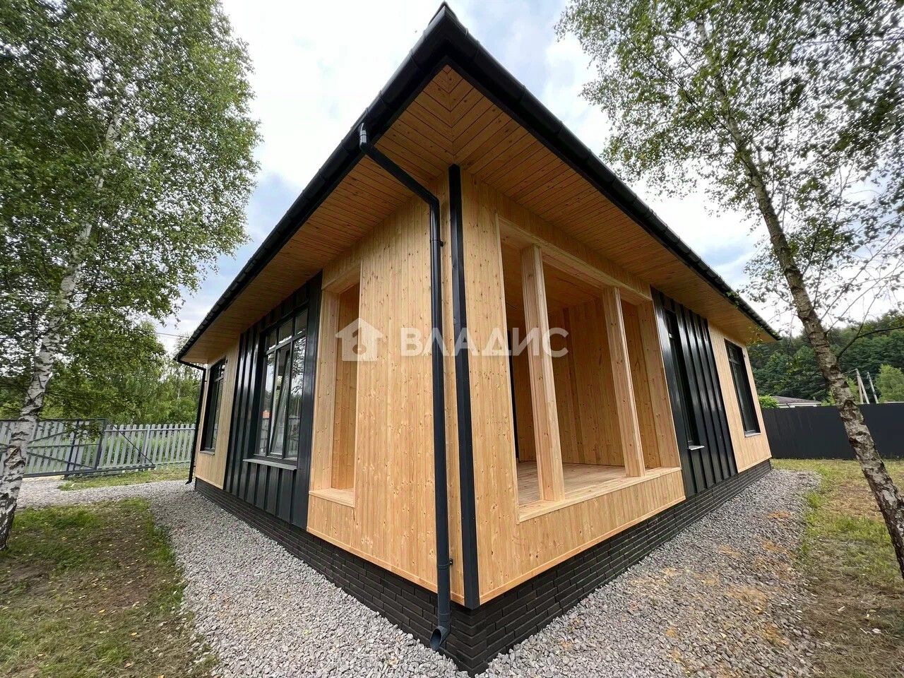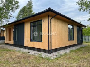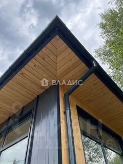- Современный фасад — натуральный имитатор бруса в сочетании с фальцевой кровлей, придающий дому стиль и долговечность.