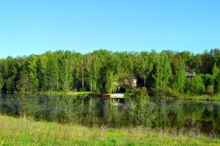 Участок на берегу реки Никажель в новом современной коттеджном посёлке имеющим свой песчаный пляж. Окружен лесным массивом.