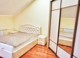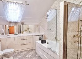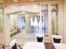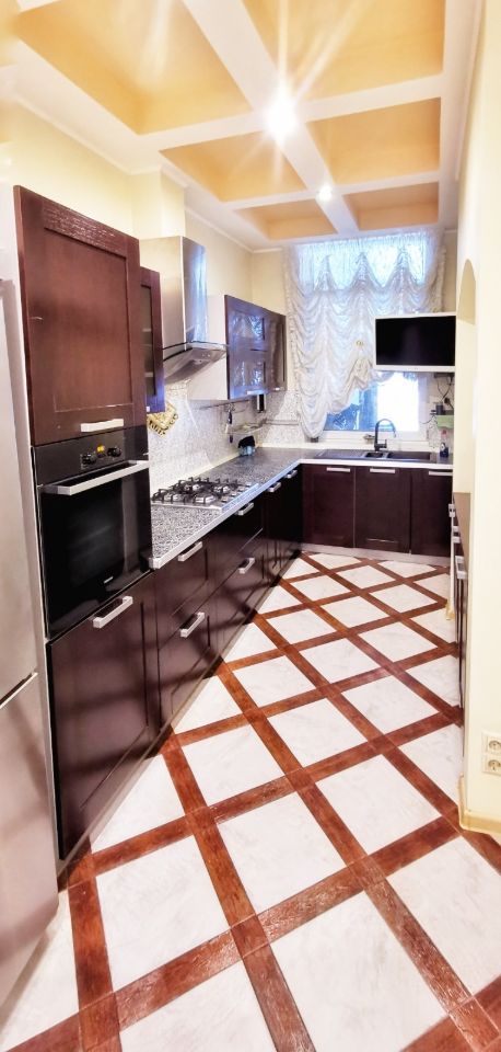 Ремонт в классическом стиле выполнен из качественных натуральных материалов премиум-класса: лестница - массив дуба. Полы - керамогранит.