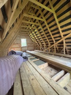 Дом каркасный 2023 годы постройки, 6 на 3, утеплённый (стены 100мм, полы 150мм), стоит на свайном фундаменте, крыша металлочерепица, пластиковые окна, 2 этаж нужно утеплить и зашить вагонкой, в доме есть материал для достройки 1-го этажа и наружной отделки дома (вагонкой), туалет на улице, на первом этаже 1 комната, кухня и прихожая.