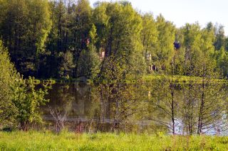Участок на берегу реки Никажель в новом современной коттеджном посёлке имеющим свой песчаный пляж. Окружен лесным массивом.
