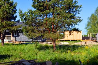 Участок на берегу реки Никажель в новом современной коттеджном посёлке имеющим свой песчаный пляж. Окружен лесным массивом.