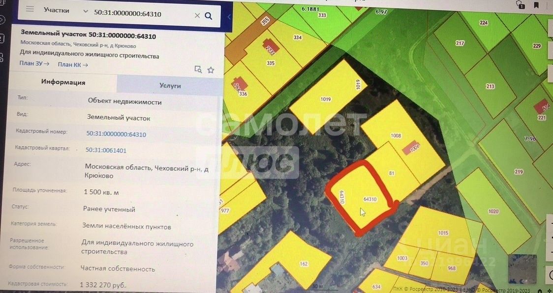 Арт. 117259397 Продается земельный участок в Чеховском районе, деревня Крюково, Участок сухой, правильной формы, с межеванием.