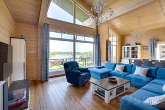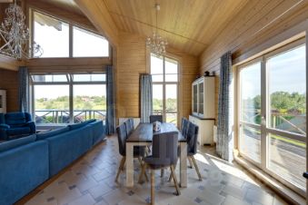 КП Экопарк Ушаково. Продается комплекс из двух коттеджей из клееного бруса 271кв.м. и 280 кв.м. на одной территории. Первая береговая линия реки!!! Потрясающие виды на реку из всех помещений в сочетании со своим выходом с участка к реке создают ощущение приватности, спокойствия и единения с природой!!! Это идеальное место для тех, кто ценит комфорт, природу и качество жизни!!! Прекрасный участок 35 сот. с благоустроенной территорией. На участке расположены: два основных дома, дом для обслуживающего персонала, домик-мастерская, гараж, большая территория для парковки. Каждый из домов имеет прекрасно спланированное пространство: 1 этаж: прихожая с гардеробной зоной, большая гостиная (65 кв.м.) со вторым светом, кухня-столовая, кабинет с видами на реку или сауна, две спальни (18 и 19 кв.м.), санузел с душевой и постирочной зоной. 2 этаж: большой холл, две жилые комнаты (16 и 22 кв.м.), санузел с ванной и душевой. Все коммуникации заведены в дома и подключены: магистральный газ, электричество, скважина, локальные очистные сооружения, сделан глубинный дренаж по всему участку, проведен интернет (оптоволокно), сделано видеонаблюдение. Комплекс находится в строго охраняемом коттеджном поселке, где созданы все условия для комфортной жизни: охраняемая территория, прогулочные зоны, детская и спортивные площадки, свой пляж. В 10 минутах езды расположено Истринское водохранилище - отличное место как для купания, так и для рыбалки. Рядом также имеется все для увлекательного досуга: Королевские Конюшни — новый конноспортивный клуб с крытым манежем и детской школой верховой езды, рыболовно-спортивный центр, сафари-парк, центр водных видов спорта, корты, спортивные площадки, футбольные поля и оборудованные пляжи, Храм Бориса и Глеба (1809-1816 г. г. постройки), а также магазины, рынки и др. Удобный выезд на Новорижское и Волоколамское шоссе.