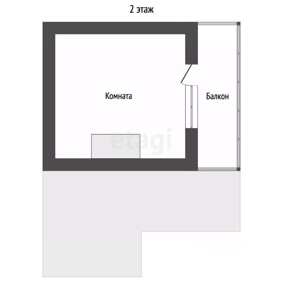 Планировка: на первом этаже расположены кухня, жилая комната и веранда, на второй этаж ведет деревянная лестница, где находится еще одна комната с выходом на балкон.