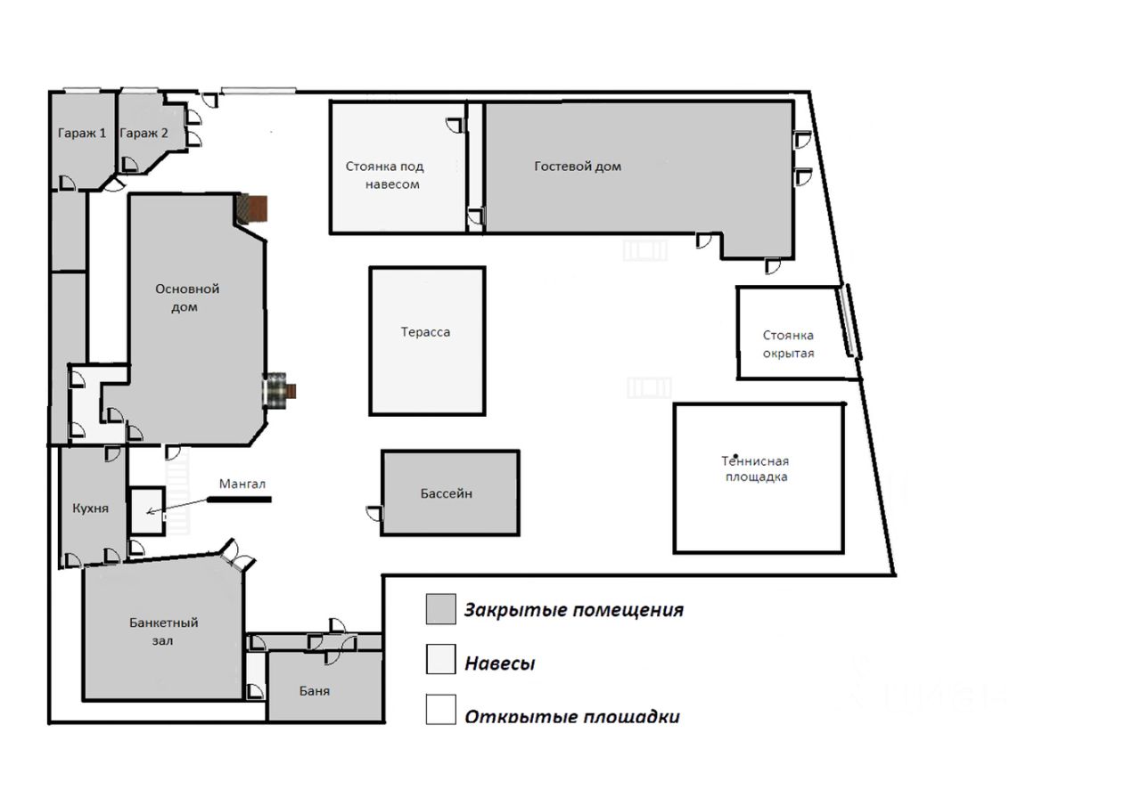 ПРОЧИЕ ПОСТРОЙКИ: баня, зимний бассейн (без отделки), гараж 2-х-этажный.