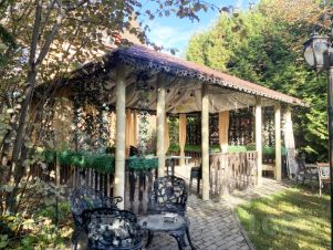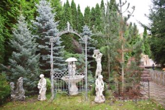- Хвойные и лиственные деревья, кустарники, цветники, парковая скульптура и мебель, кованая ограда, дорожки из брусчатки. Грамотная система дренажа и система авто-полива. Зоны отдыха: большое патио, беседка для фуршетов, мангальная зона, игровая площадка, сад.