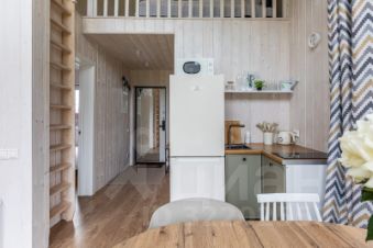 Дом внутри 52,3 метра + крытая терраса, очень теплый , так как езде теплые полы.