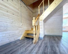 Установлены межкомнатные двери и пластиковые окна, ламинат на первом этаже.